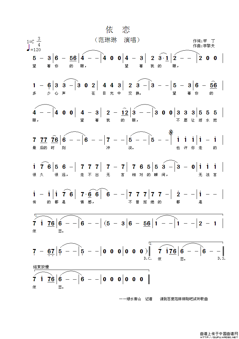 提示:在曲谱图片上单击右键,选择"图片另存为..."即可将曲谱保存到您的电脑中,打印时候可将图片插入到WORD中,调整合适大小打印即可。