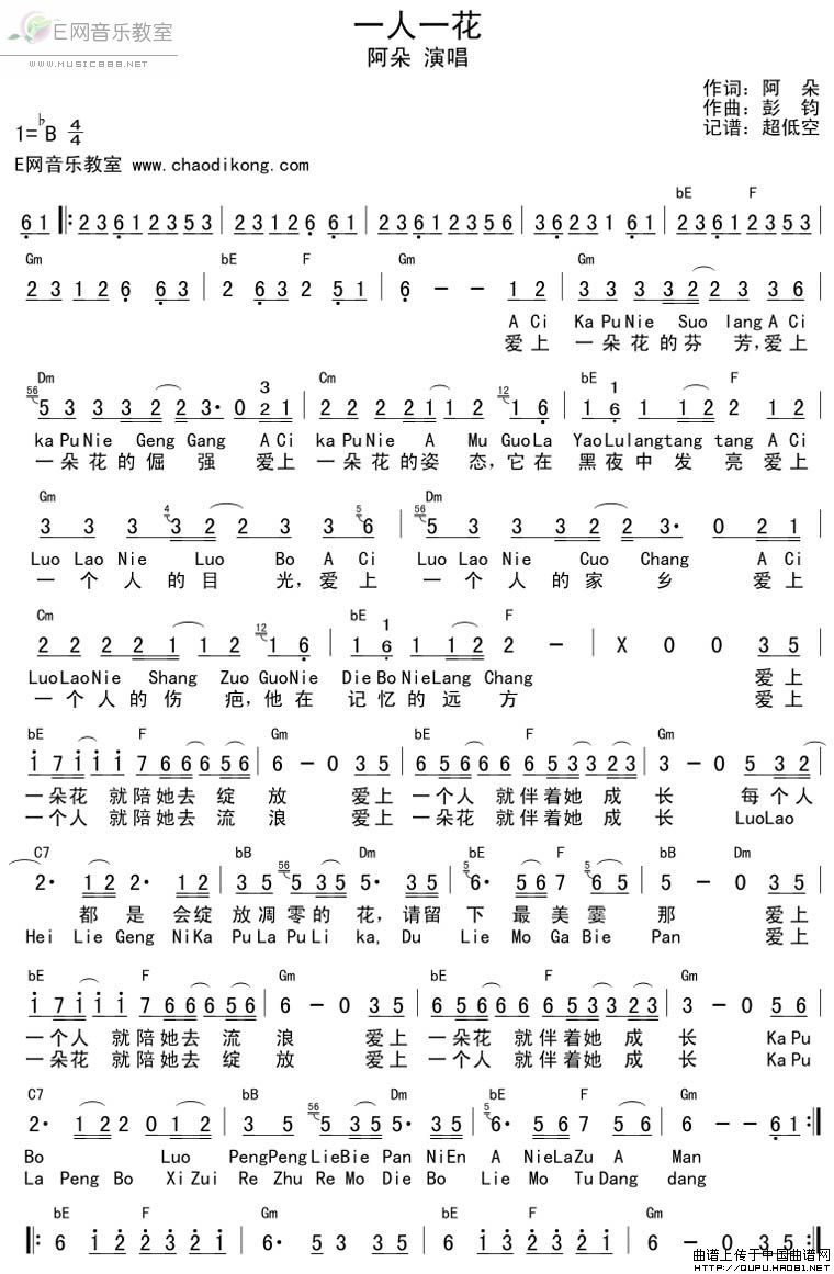 作词:阿朵   作曲:彭钧   演唱(奏):阿朵   格式:简谱   来源:E网音乐教室|http://www.chaodikong.com   上传:超低空   日期:2011-12-06   浏览次数: