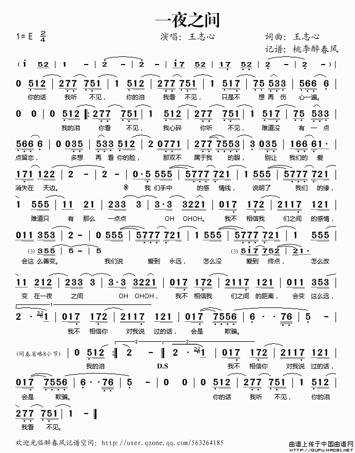 作词:王志心 作曲:王志心 演唱(奏):王志心 格式:简谱 来源:桃李醉春风记谱 上传:桃李醉春风