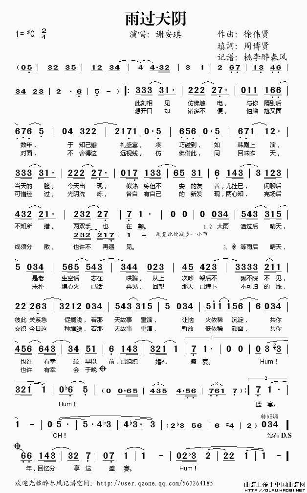 作词:徐伟贤   作曲:周博贤   演唱(奏):谢安琪   格式:简谱   来源:桃李醉春风记谱   上传:桃李醉春风   日期:2010-03-22   浏览次数: