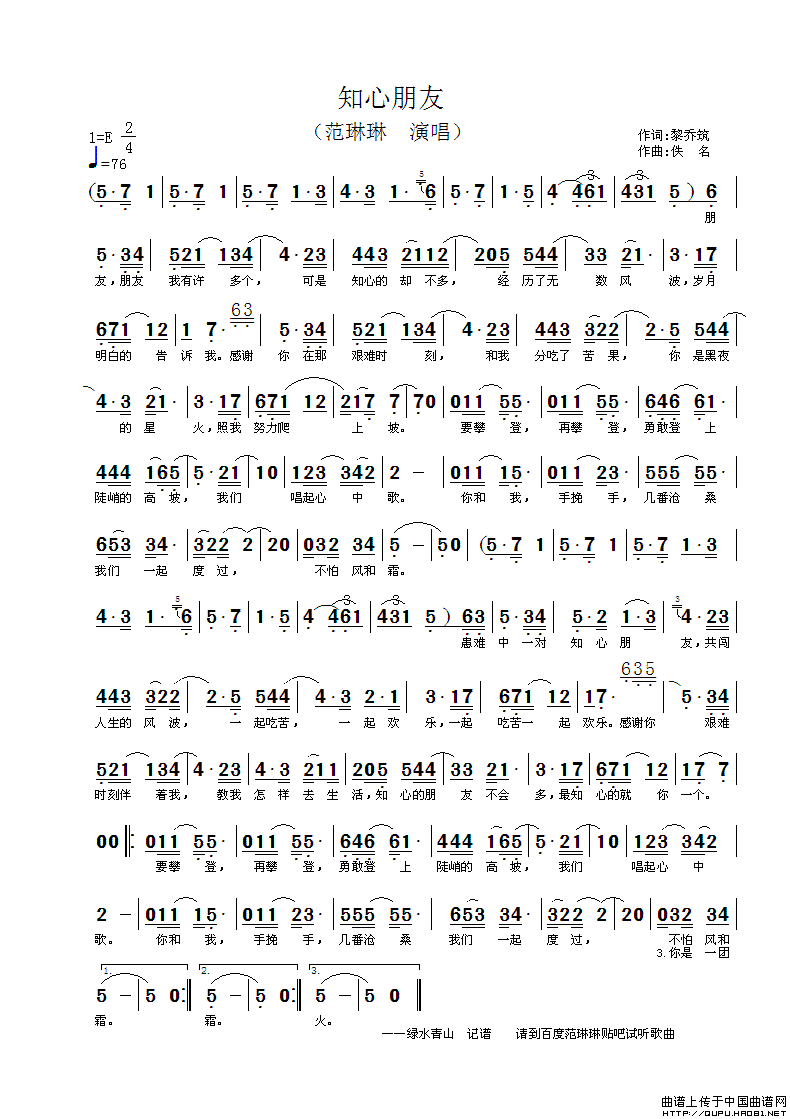 知心朋友(黎乔筑词 佚名曲)(1)_原文件名:知心朋友1.gif