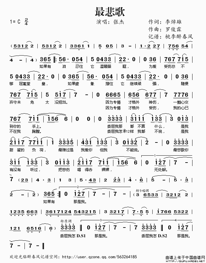 作词:李焯雄   作曲:罗俊霖   演唱(奏):张杰   格式:简谱   来源:桃李醉春风 记谱上传   上传:桃李醉春风   日期:2010-12-27   浏览次数: