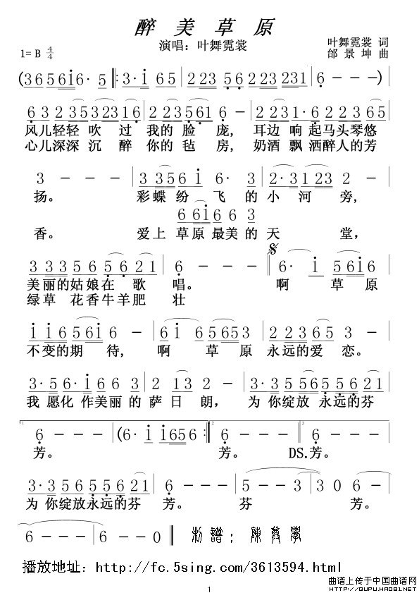 作词:叶舞霓裳   作曲:邰景坤   演唱(奏):叶舞霓裳   格式:简谱   来源:谱友陈尊学上传   上传:陈尊学   日期:2011-08-07   浏览次数: