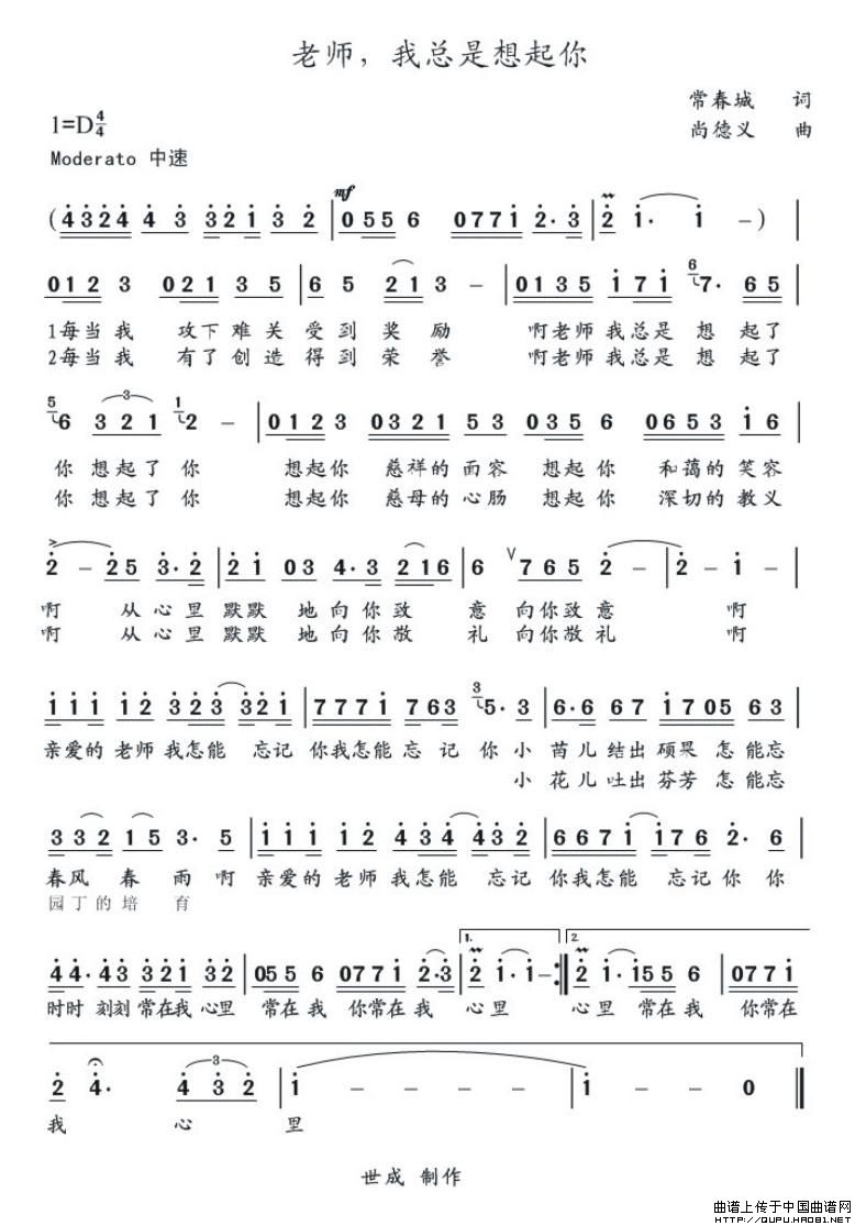 关于《老师,我总是想起你》曲谱的评论