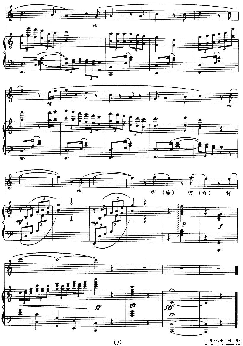 提示:在曲谱图片上单击右键,选择"图片另存为..."即可将曲谱保存到您的电脑中,打印时候可将图片插入到WORD中,调整合适大小打印即可。