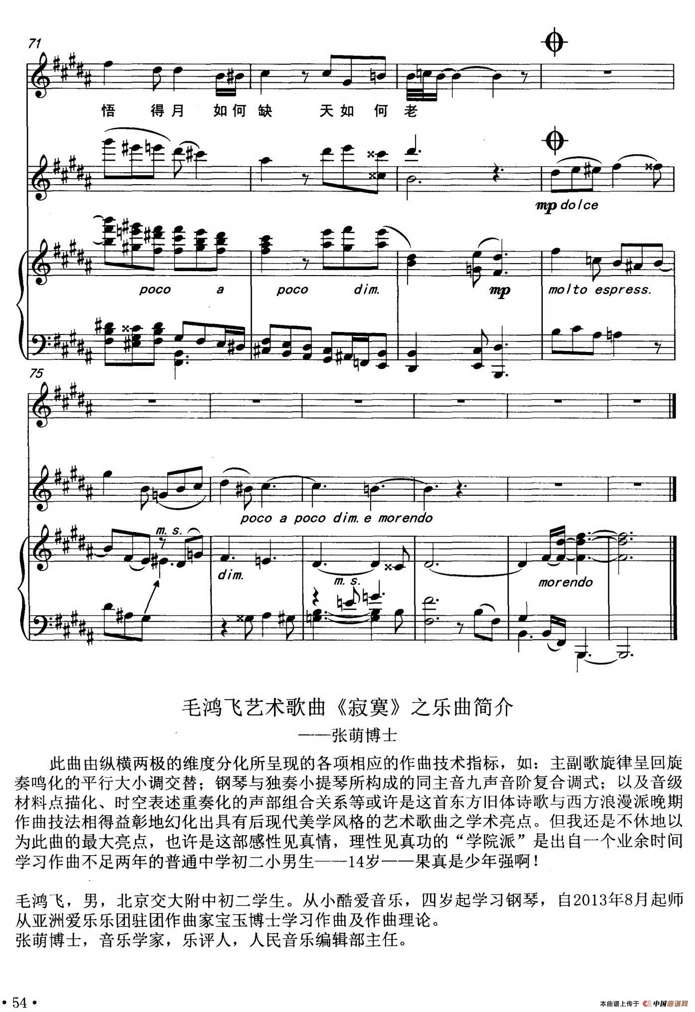 关于《寂寞》曲谱的评论