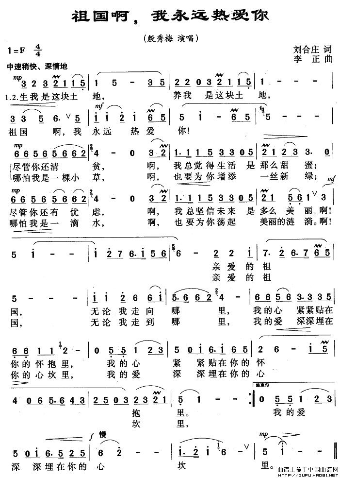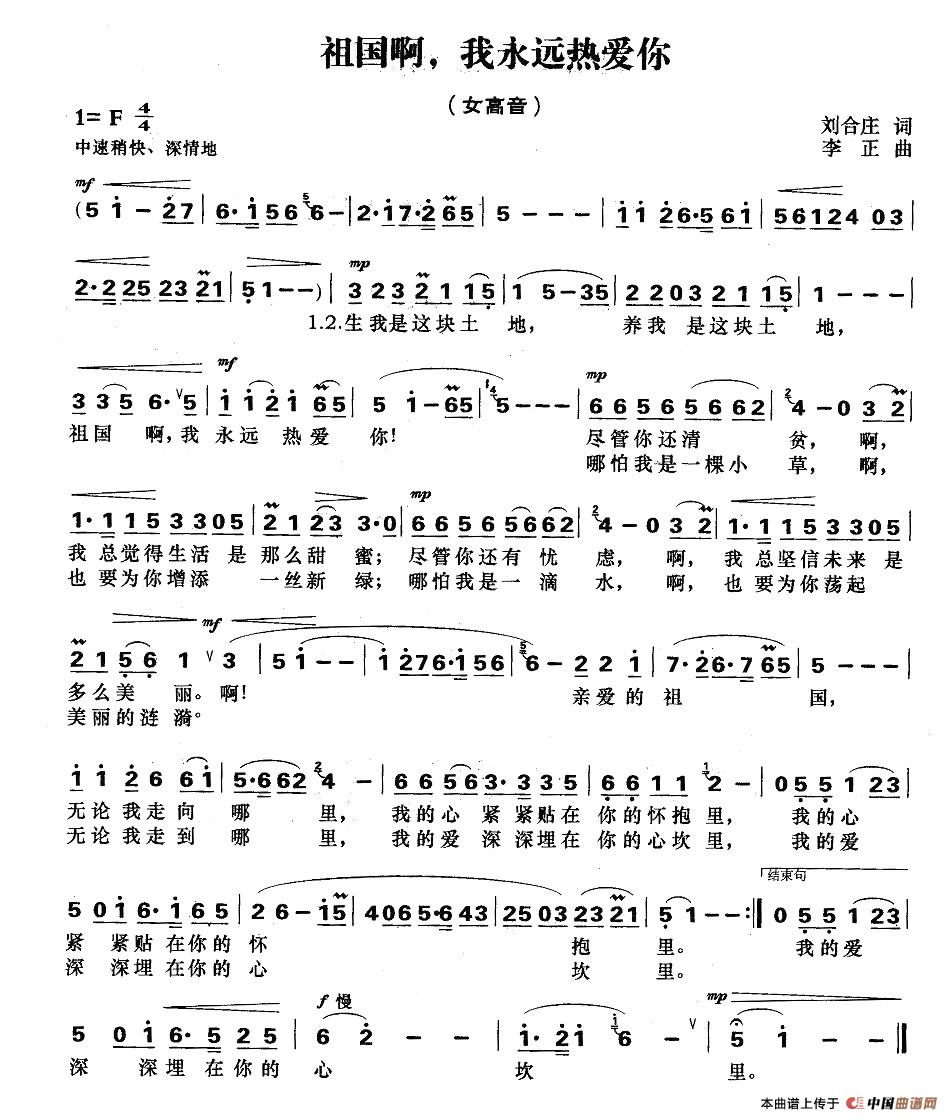 关于《祖国啊,我永远热爱你》曲谱的评论