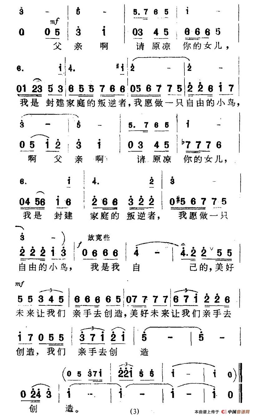 父亲啊请原谅你的女儿,我是封建家庭的叛逆者,我愿做一只自由的小鸟,