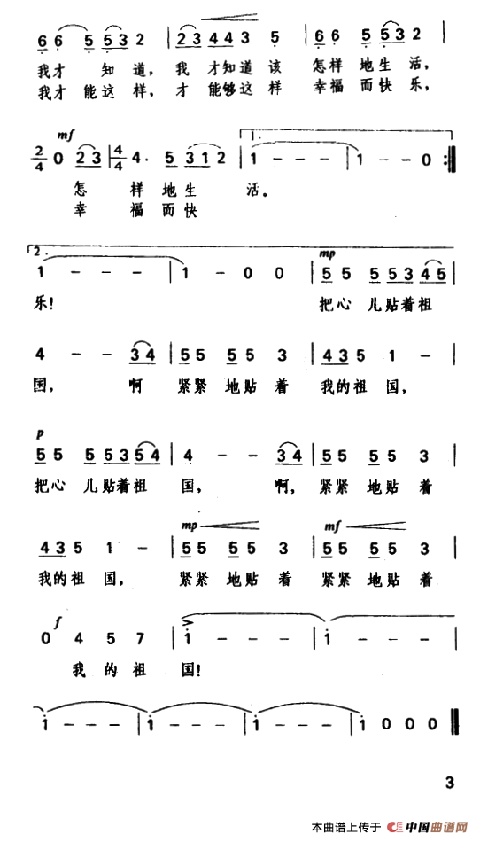 关于《把心儿贴着祖国》曲谱的评论