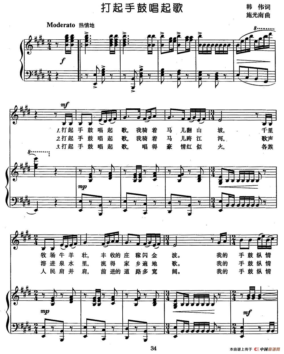打起手鼓唱起歌,我骑着马儿跨江河,歌声溶进泉水里,流得家乡遍地歌。