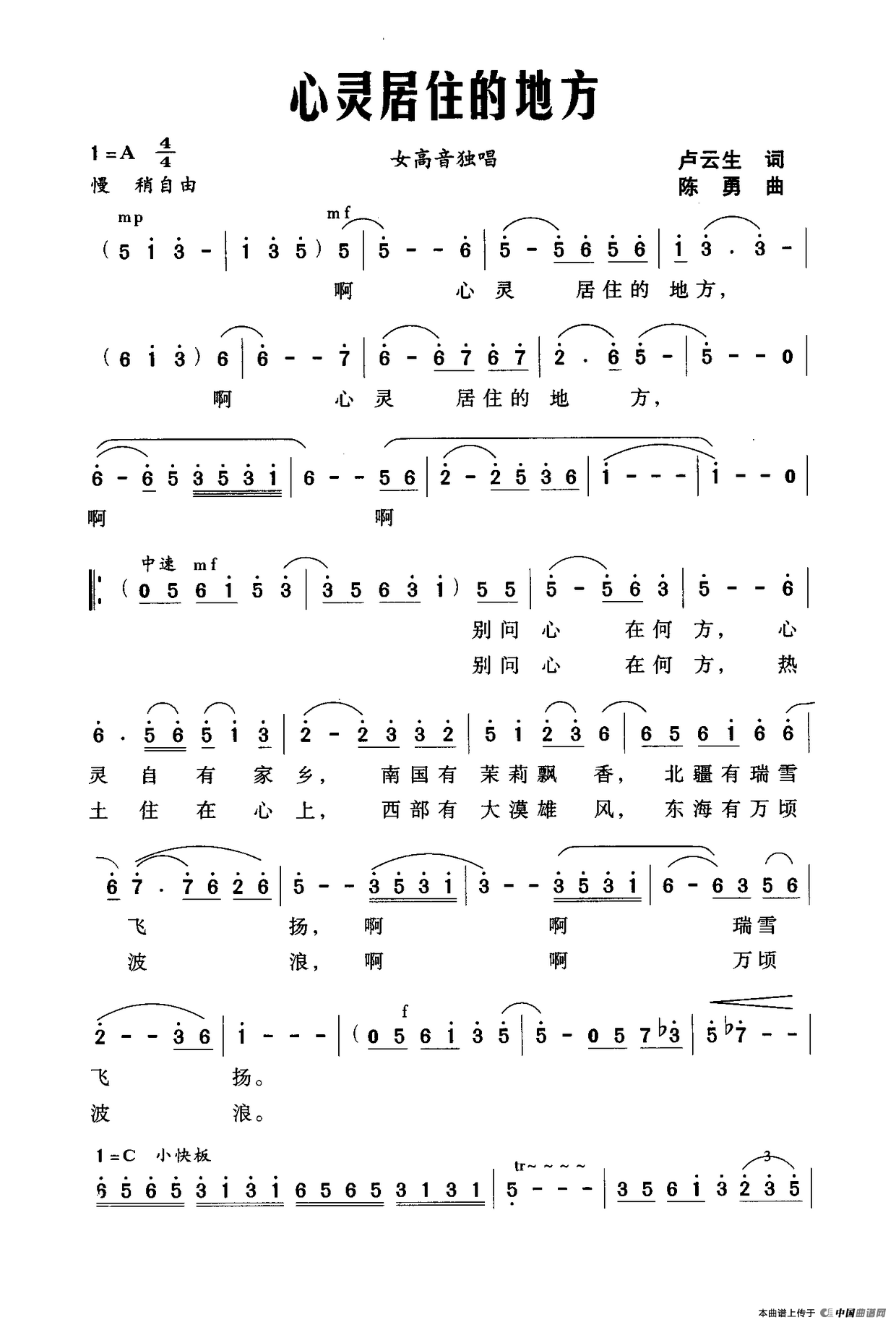 心灵居住的地方(卢云生词 陈勇曲)(1)_原文件名:心灵居住的地方.png