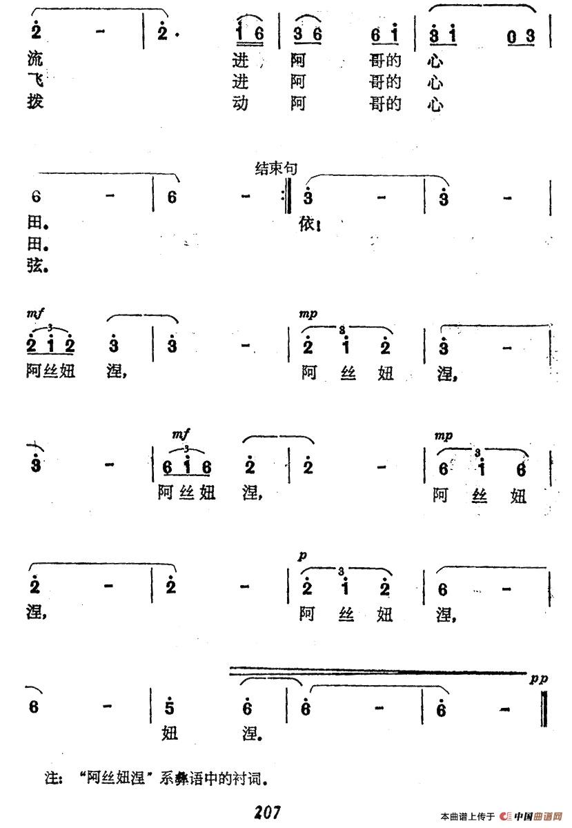 关于《啊,口弦》曲谱的评论