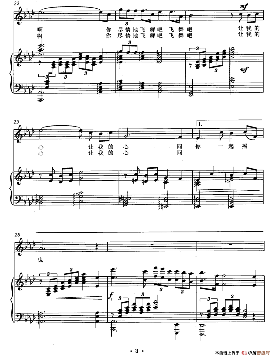 提示:在曲谱图片上单击右键,选择“图片另存为...”即可将曲谱保存到您的电脑中,打印时候可将图片插入到WORD中,调整合适大小打印即可。