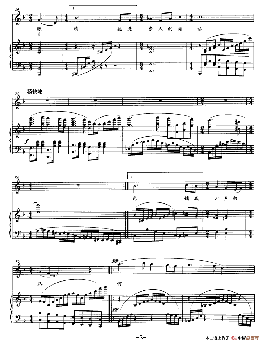 关于《故乡的树》曲谱的评论