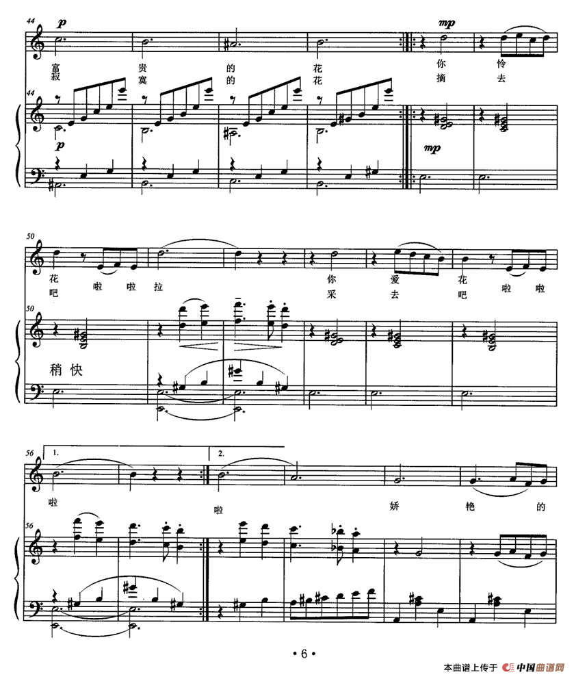关于《寂寞的花(选自歌剧《马可·波罗》)》曲谱的评论