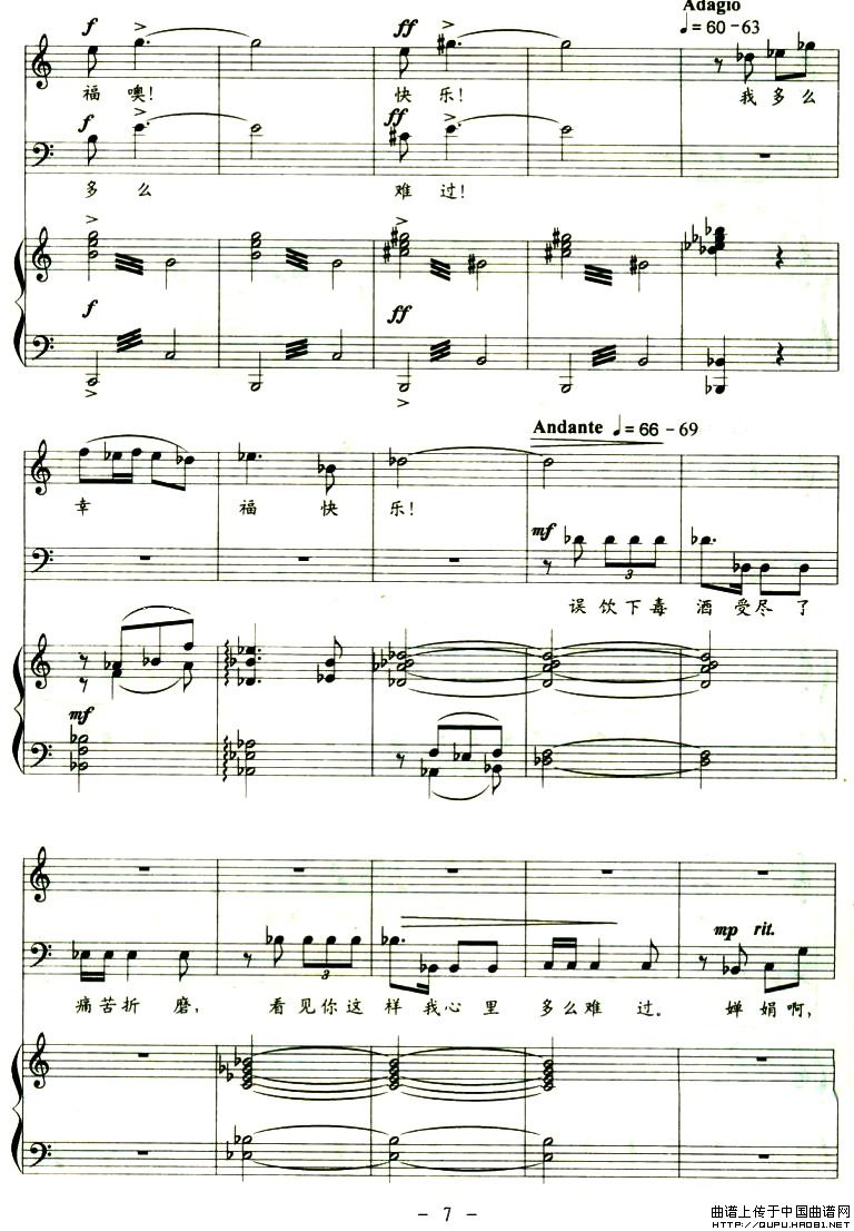 误饮下毒酒受尽了痛苦折磨,看见你这样我心里多么难过。