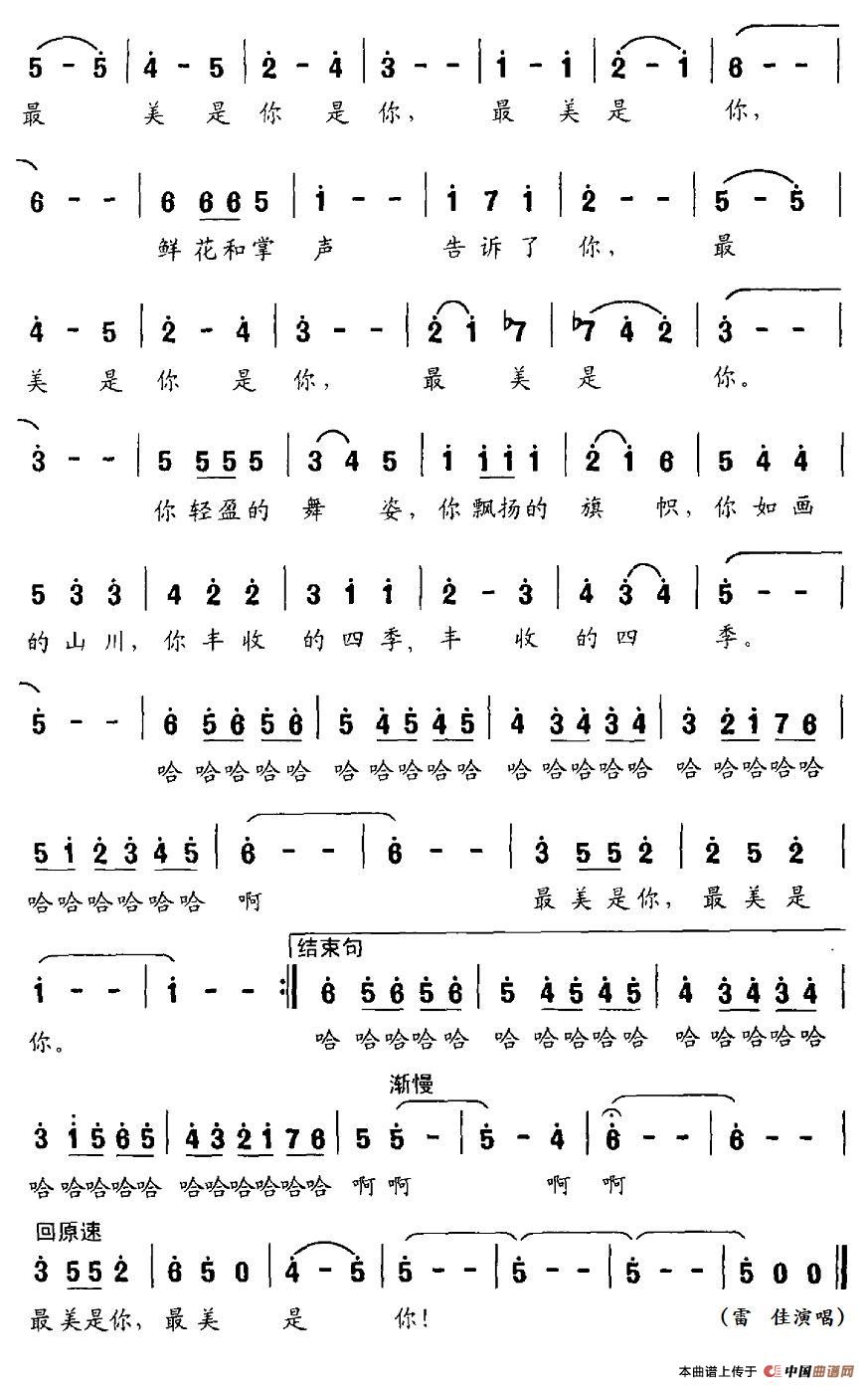 关于《最美是你》曲谱的评论