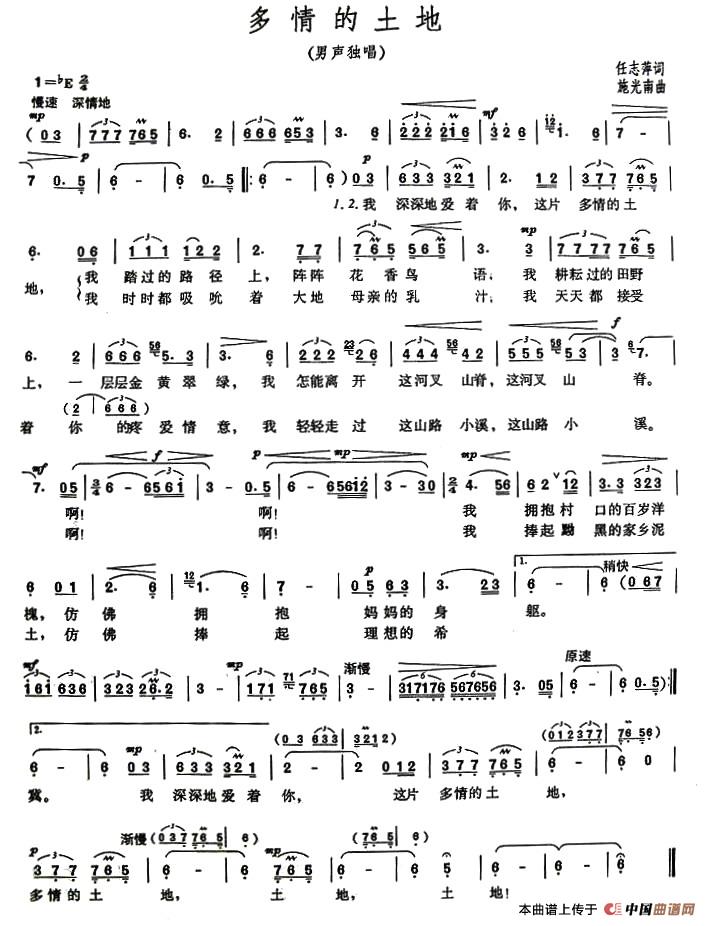 我深深地爱着你,这片多情的土地,多情的土地,土地,土地!