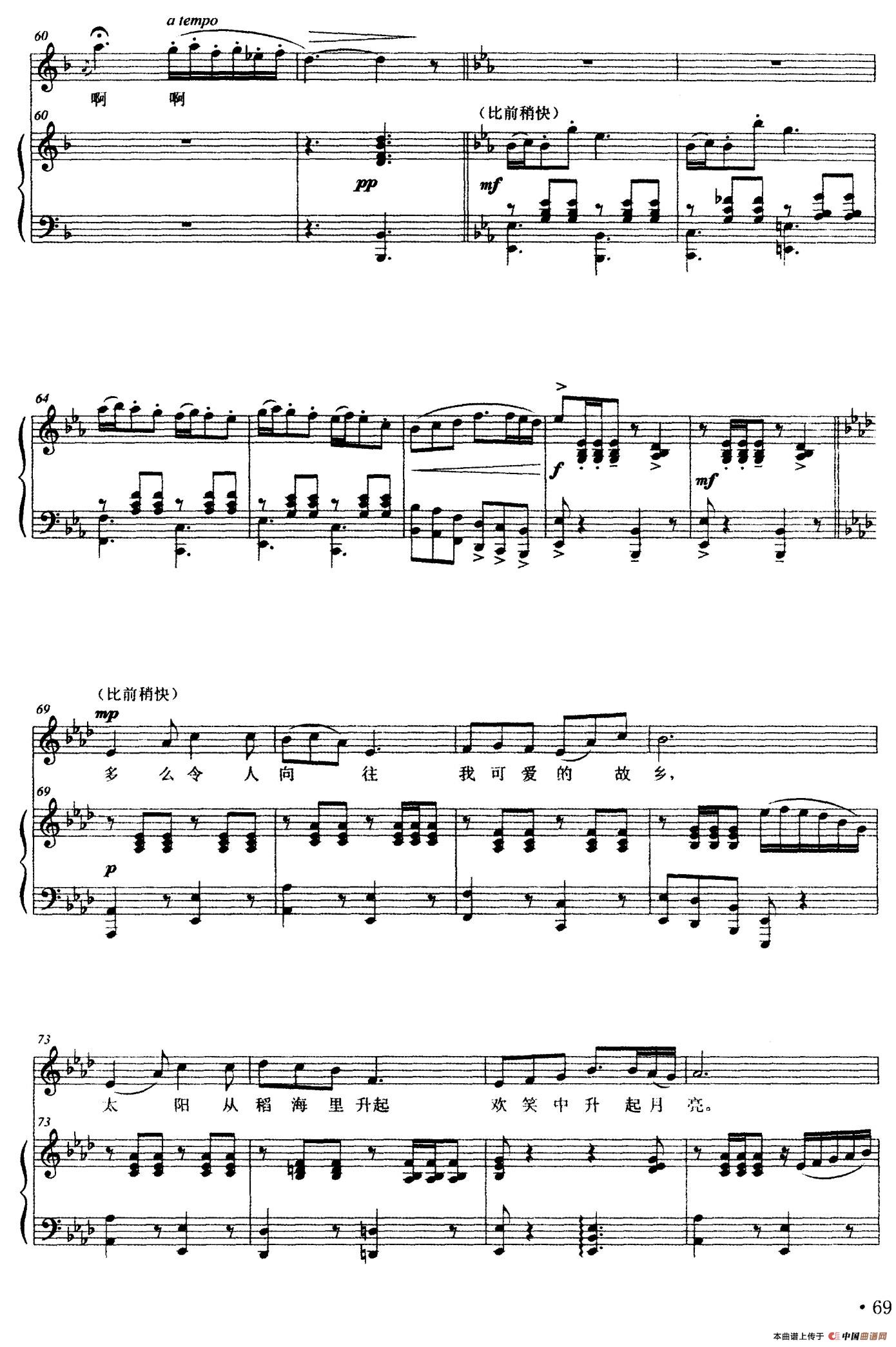 关于《故乡的夜莺》曲谱的评论