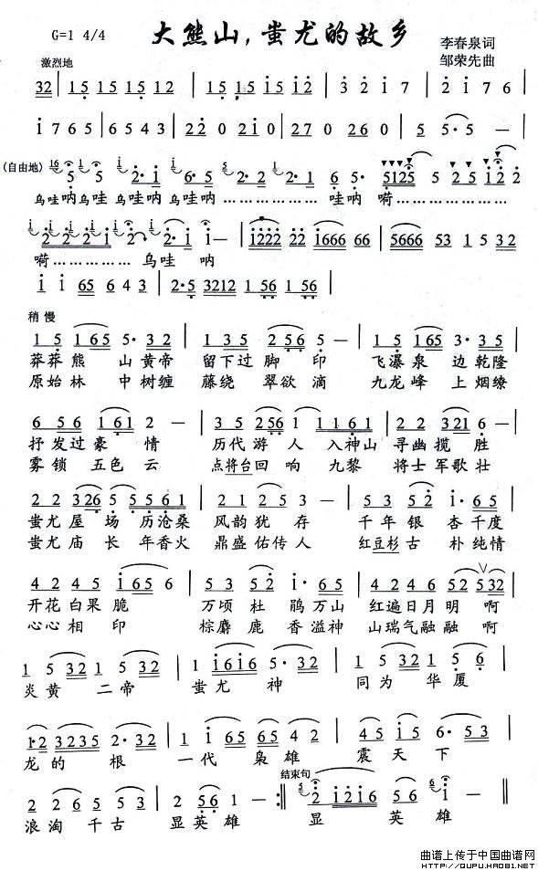 关于《大熊山蚩尤的故乡》曲谱的评论