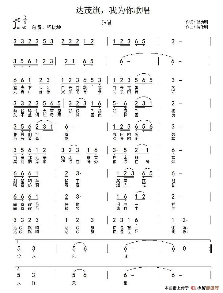 关于《达茂旗,我为你歌唱》曲谱的评论