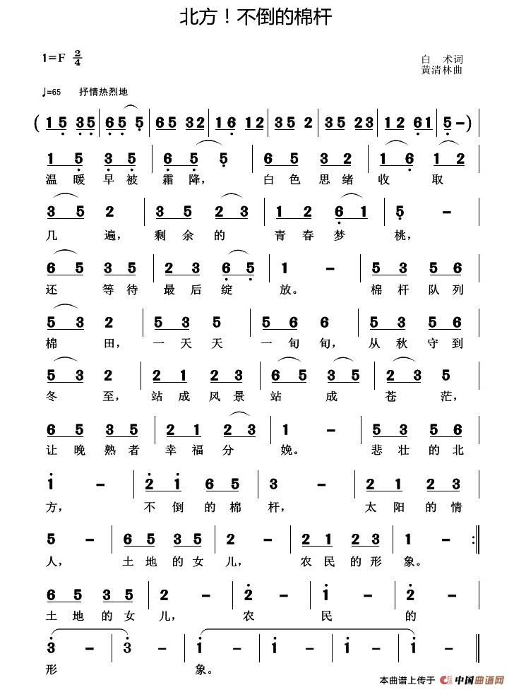 关于《北方!不倒的棉杆》曲谱的评论