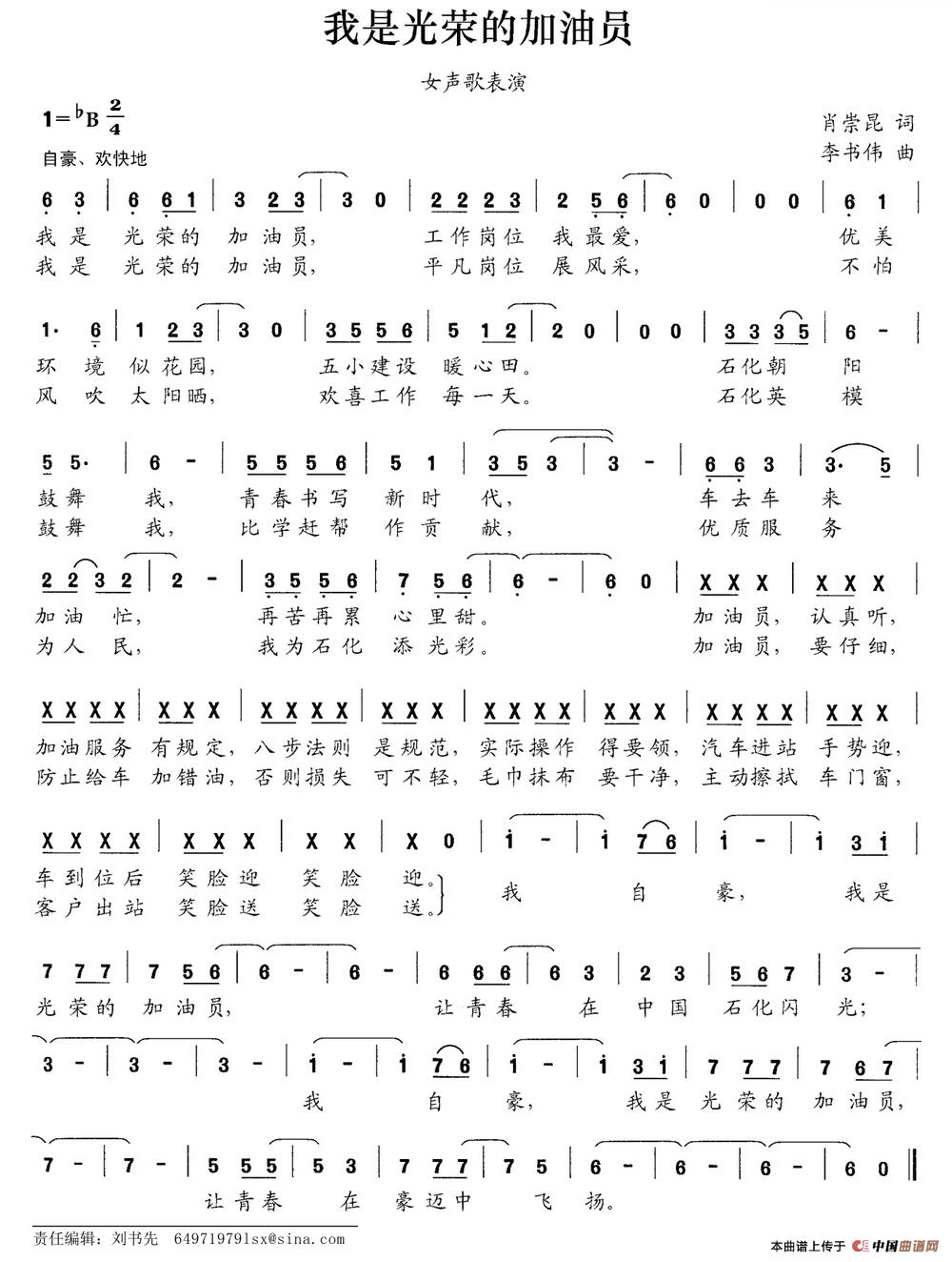 关于《我是光荣的加油员》曲谱的评论