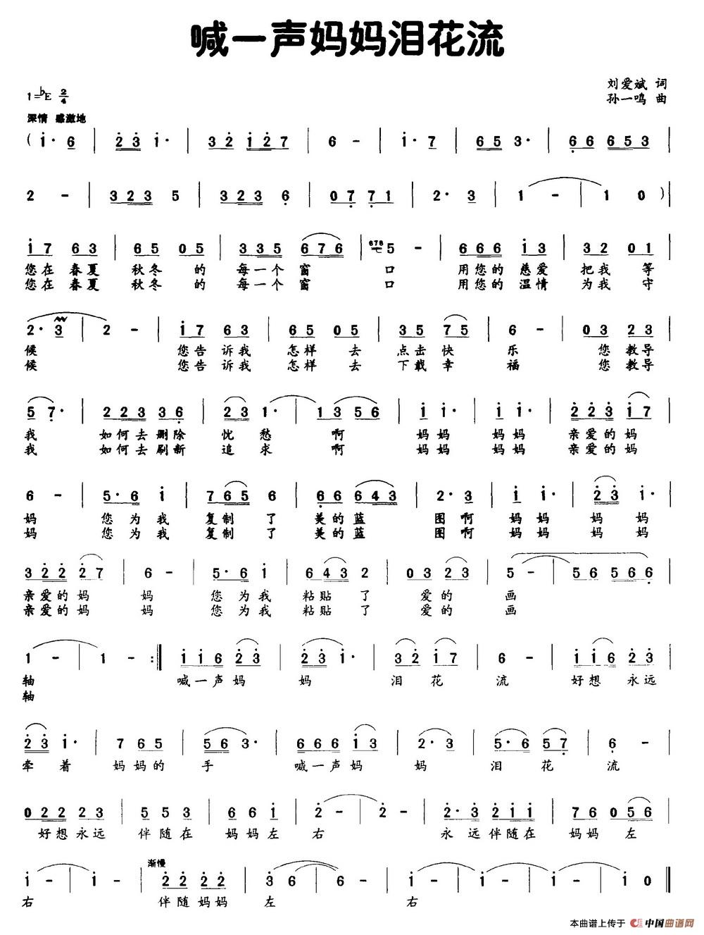 喊一声妈妈泪花流(刘爱斌词 孙一鸣曲)(1)_原文件名:喊一声妈妈泪花流1.jpg