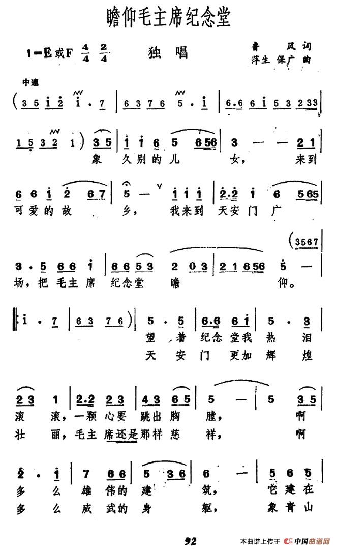 关于《瞻仰毛主席纪念堂》曲谱的评论