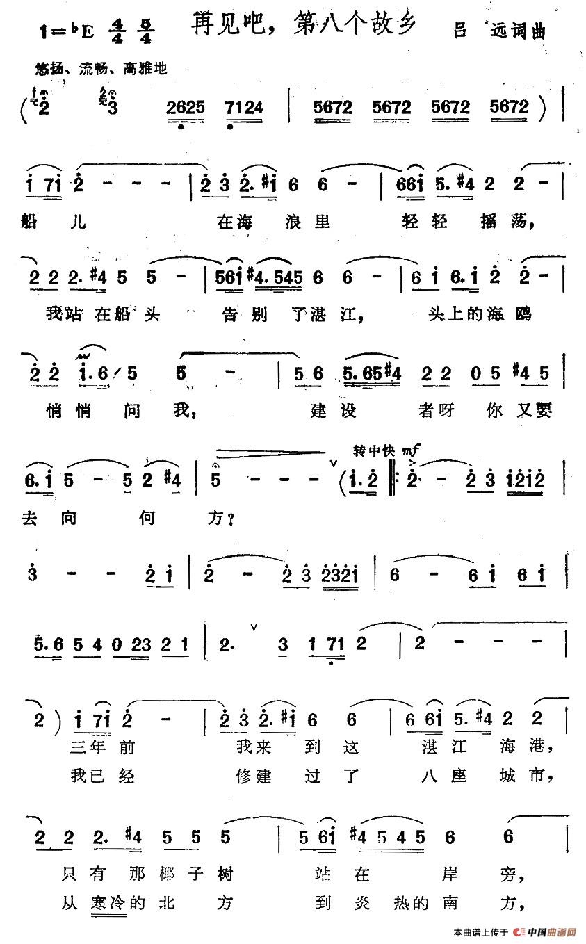 关于《再见吧,第八个故乡 》曲谱的评论