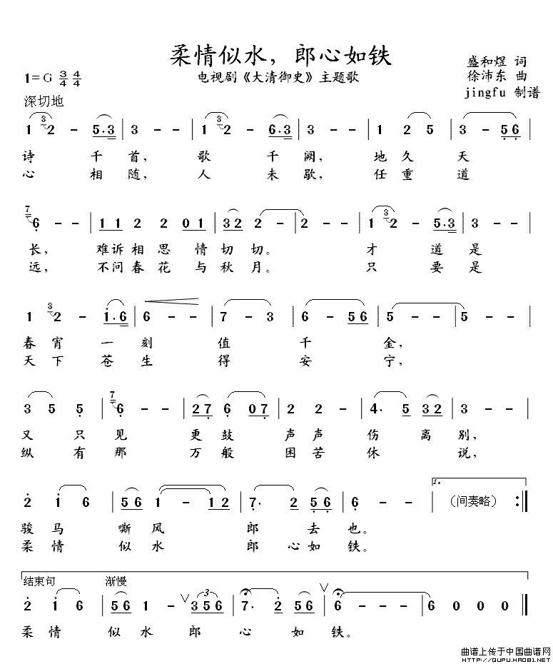 关于《柔情似水,郎心如铁》曲谱的评论
