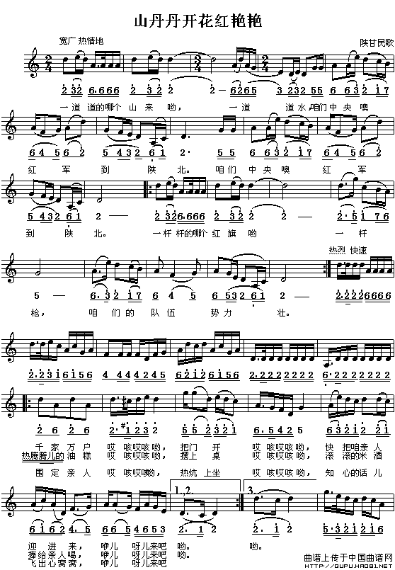 山丹丹开花红艳艳(线、简谱混排版)