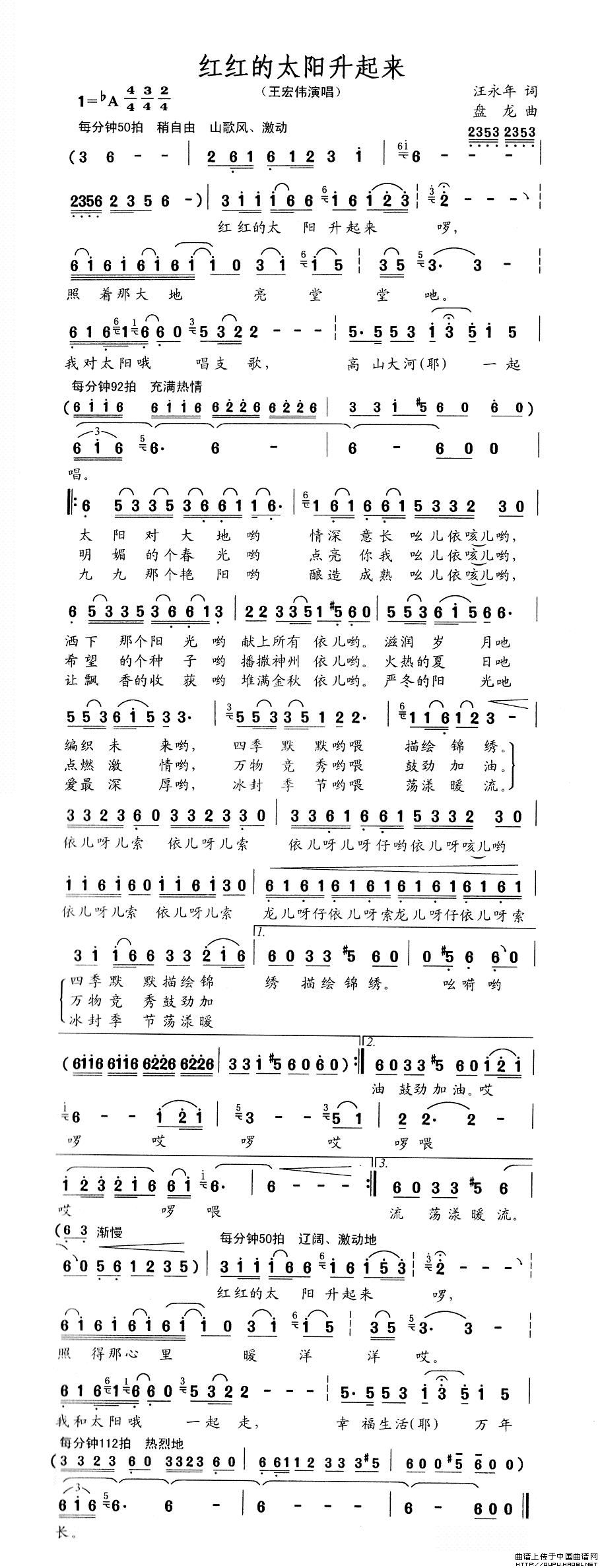 关于《红红的太阳升起来》曲谱的评论