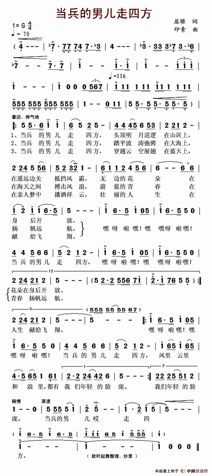 嘿呀啦嘿、嘿嘿呀啦嘿!当兵的男儿走四方!