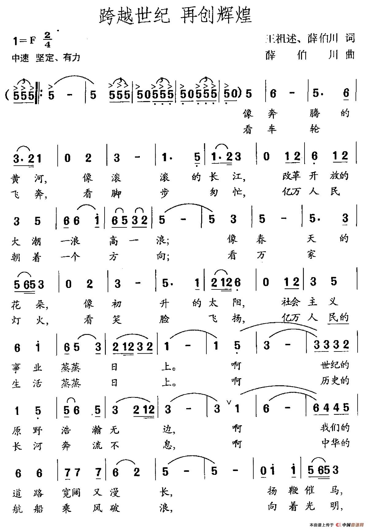 关于《跨越世纪 再创辉煌》曲谱的评论