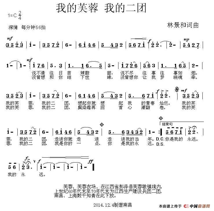 关于《我的芙蓉 我的二团》曲谱的评论