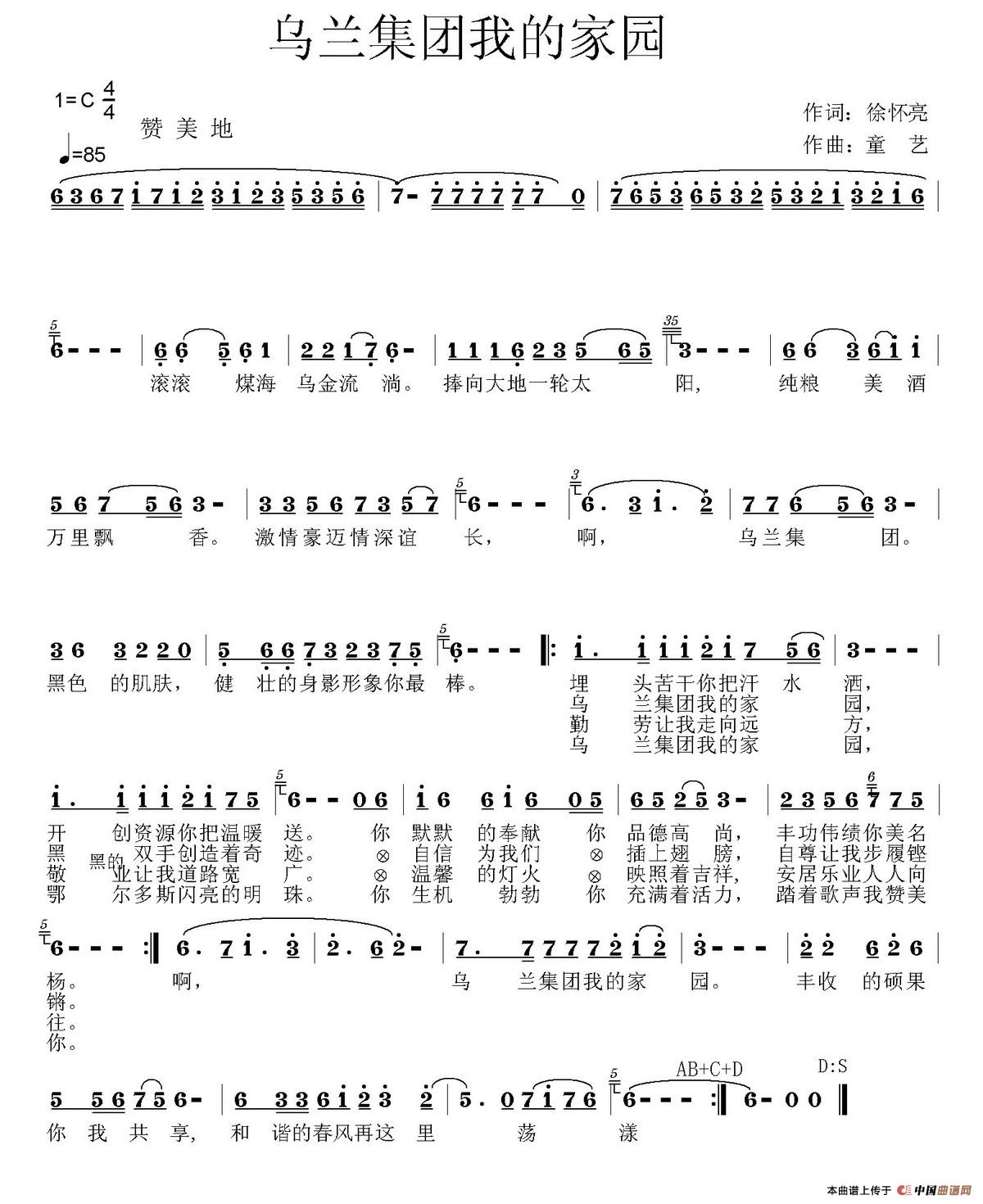 《乌兰集团我的家园》文本歌词