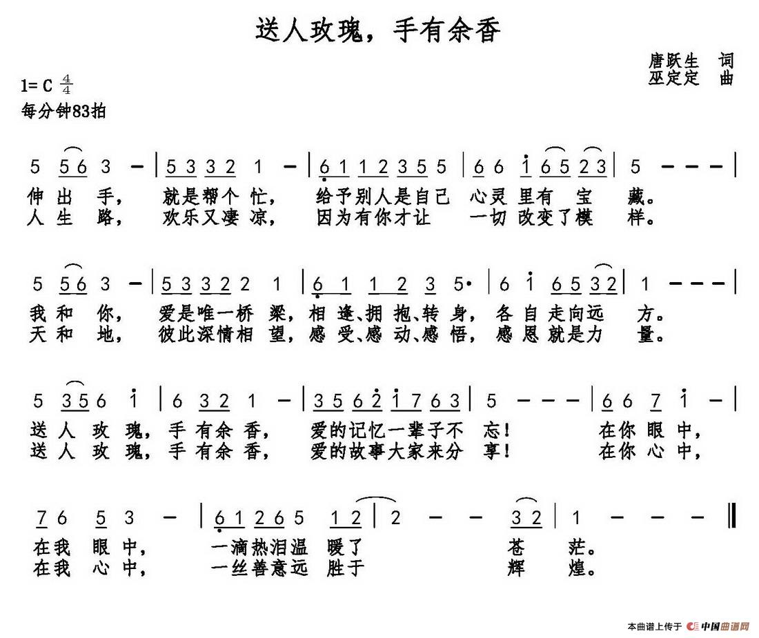 关于《送人玫瑰,手有余香》曲谱的评论