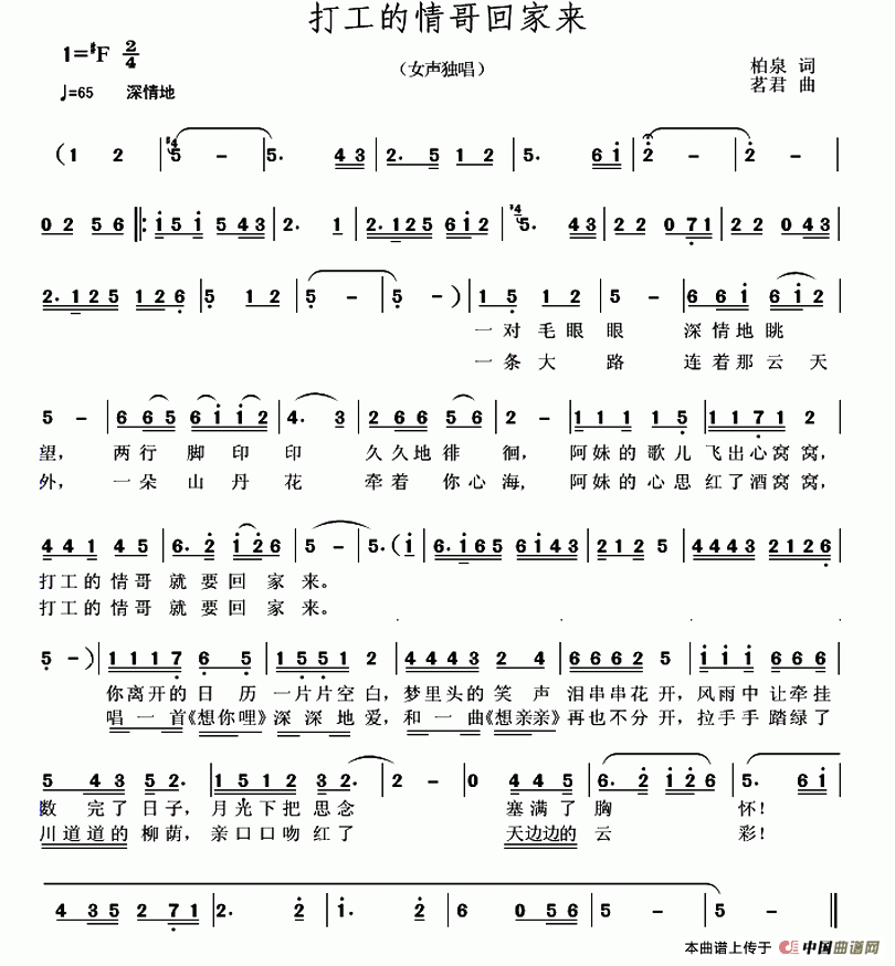 致谢:《中国曲谱网》衷心感谢作者老师馈赠原版歌谱!