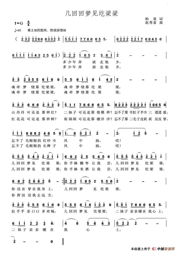 《几回回梦见圪梁梁》文本歌词