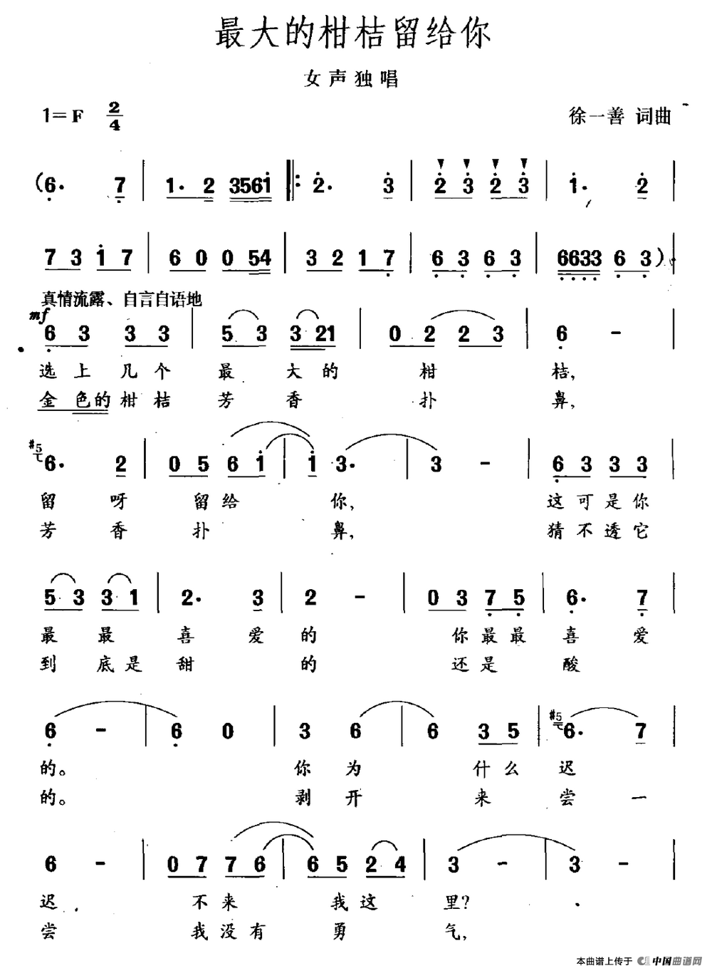 提示:在曲谱图片上单击右键,选择“图片另存为...”即可将曲谱保存到您的电脑中,打印时候可将图片插入到WORD中,调整合适大小打印即可。