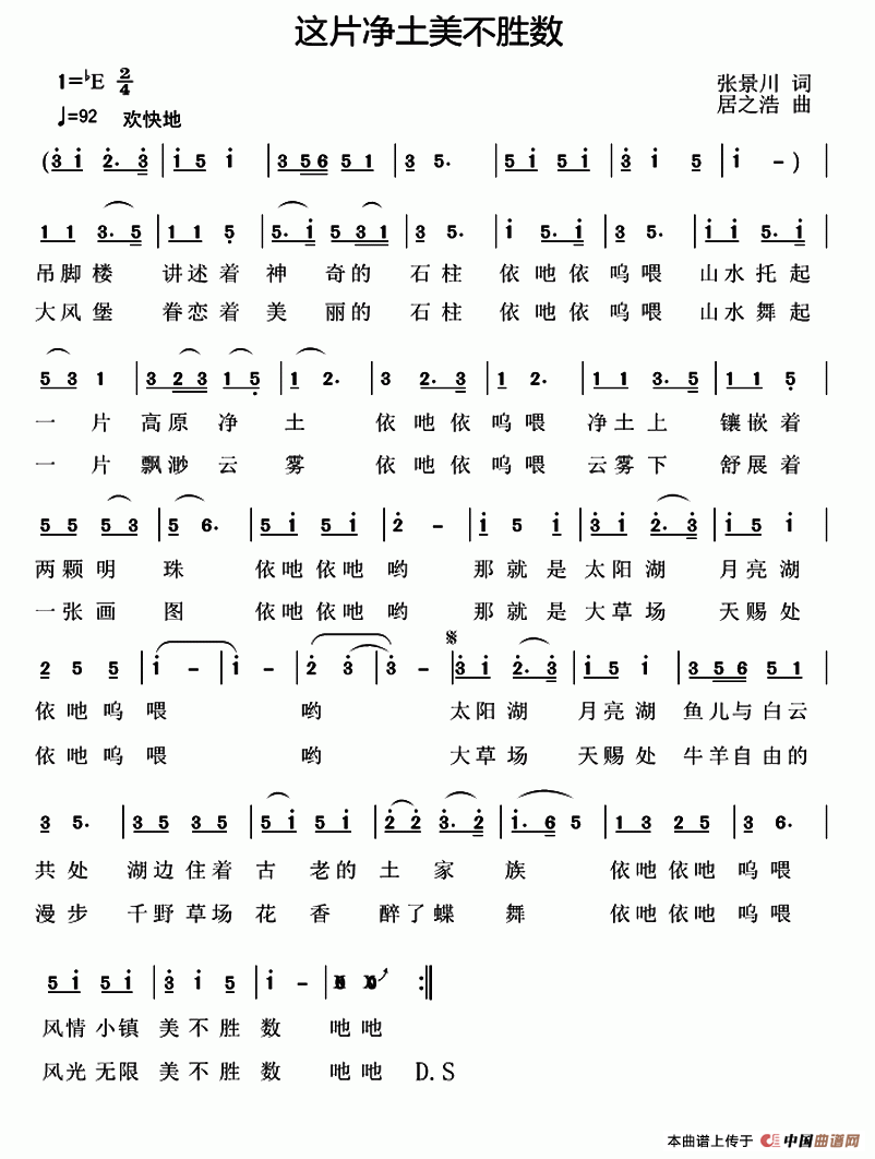 关于《这片净土美不胜数》曲谱的评论