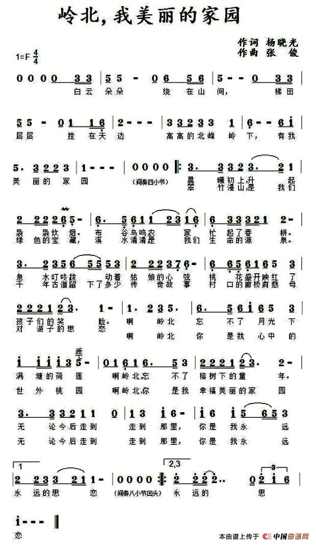 关于《岭北 我美丽的家园》曲谱的评论