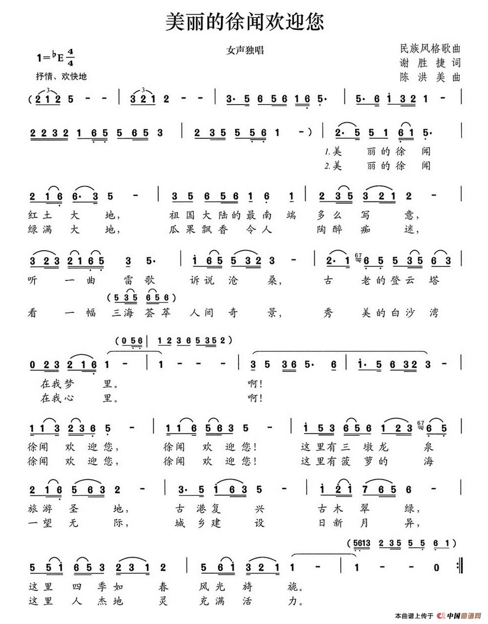 关于《美丽的徐闻欢迎您》曲谱的评论