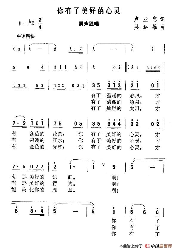关于《你有了美好的心灵》曲谱的评论