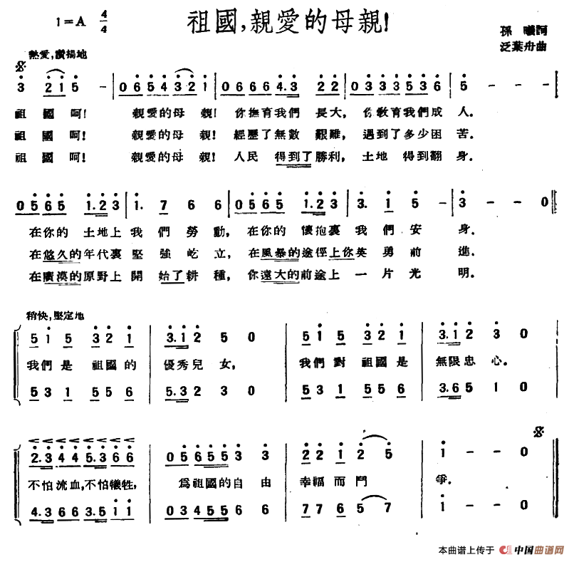 关于《祖国,亲爱的母亲!》曲谱的评论