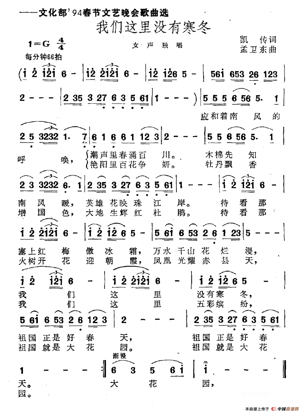 关于《我们这里没有寒冬》曲谱的评论