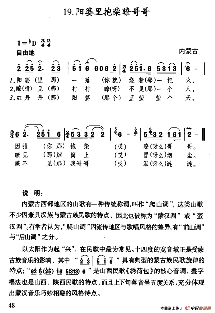关于《阳婆里抱柴瞭哥哥》曲谱的评论