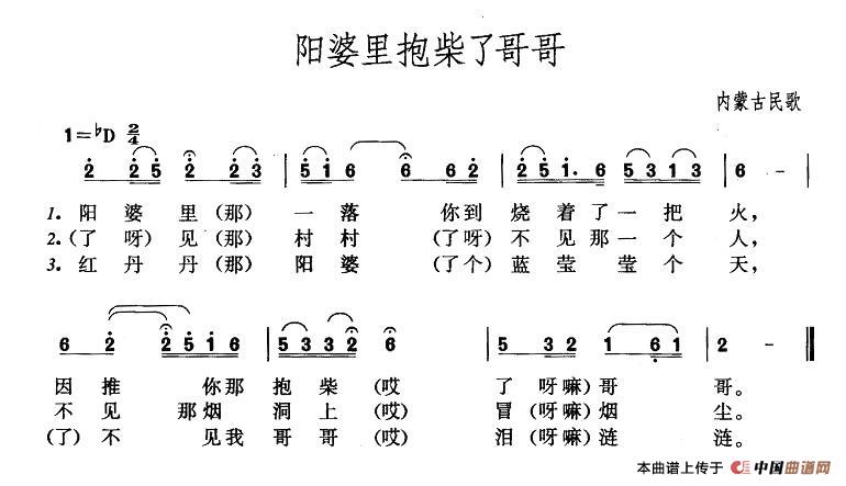 阳婆里抱柴瞭哥哥(内蒙民歌、4个版本)