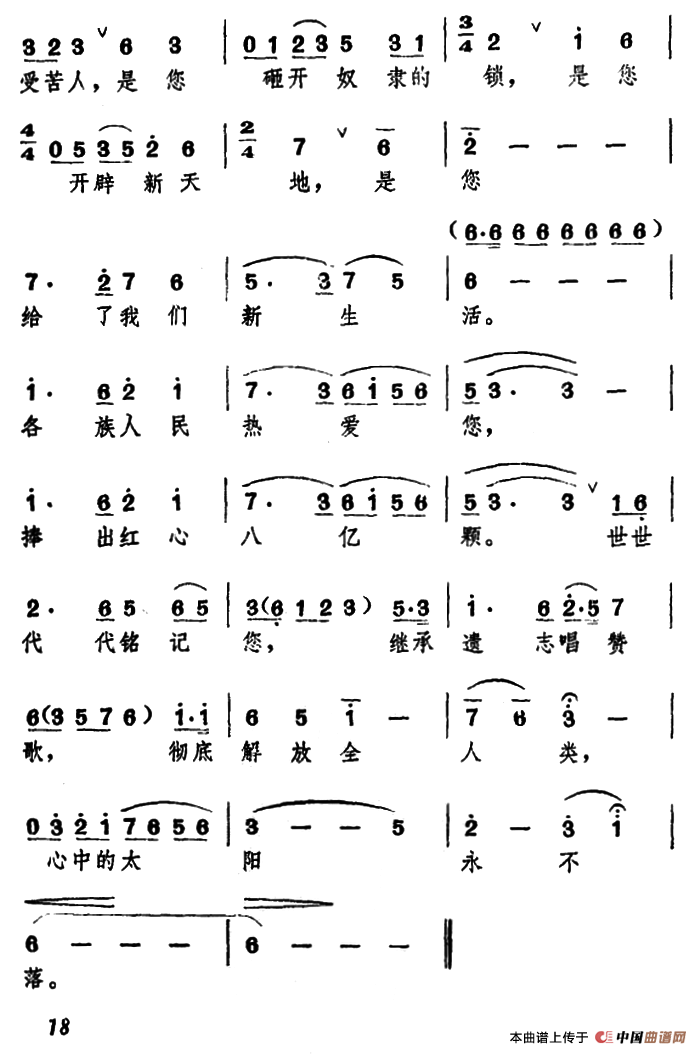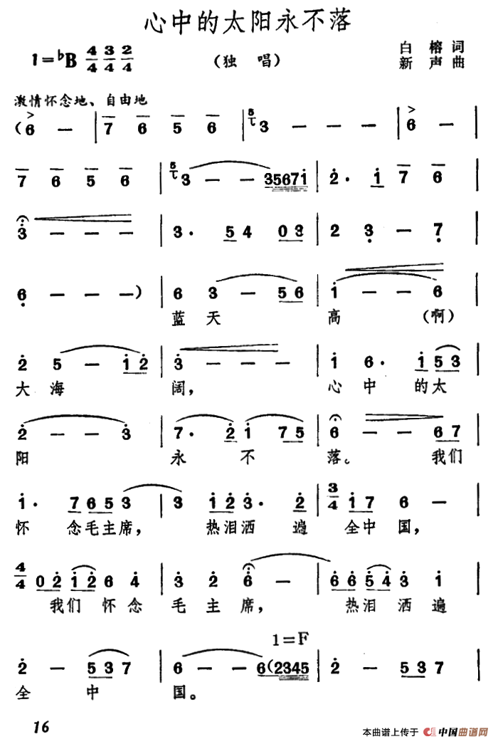 关于《心中的太阳永不落》曲谱的评论
